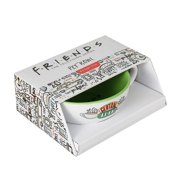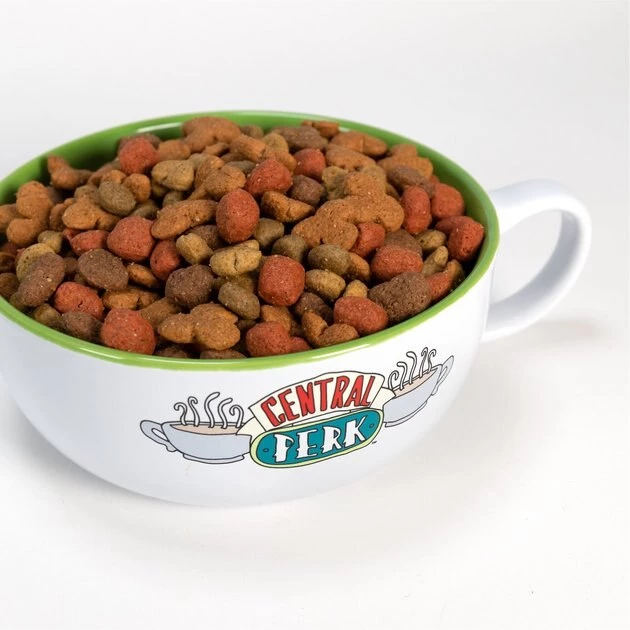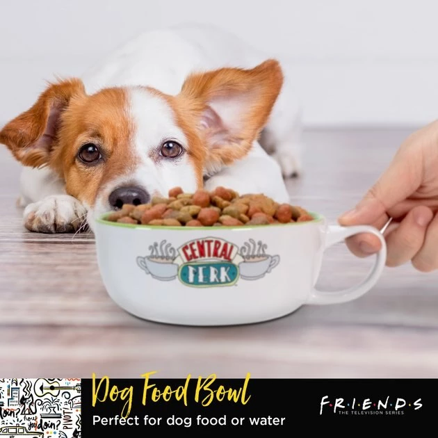 Calling all two- and four-legged Friends enthusiasts! Fetch For Pets Friends “Central Perk” Ceramic Dog Bowl is an officially licensed Warner Brothers product that will let you and your furry friend show off your love for the show. Crafted from durable, glazed ceramic, this food bowl is perfect for serving water, treats, dry food, or wet food—and it’s shaped like a mug from the iconic Central Perk cafe. The side handle makes this white bowl easy to pick up and refill. It can also be safely cleaned in the top rack of the dishwasher for convenient and sanitary care. This chic bowl is ideal for giving your furry friend her favorite treats or kibble—while letting her show off her love for her favorite Friends characters!