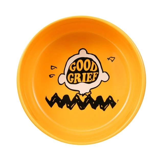 Make feeding pets fun with the Fetch For Pets Good Grief Charlie Ceramic Dog Bowl. This yellow bowl will bring a smile to your face every time you fill it with water, dry food, or wet food. It holds just the right amount of water or food and is dishwasher safe on the top rack. A premium ceramic glazed bowl makes a perfect gift for the pet or the pet lover in your life.