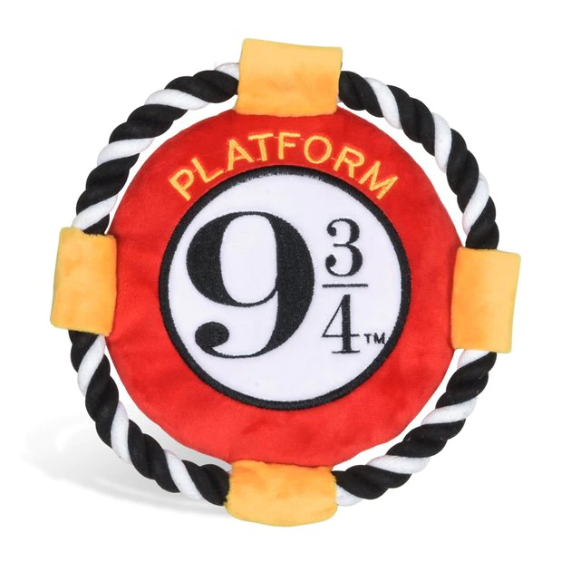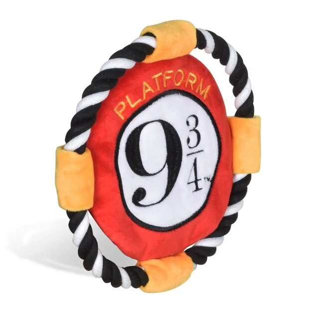 All aboard to Hogwarts! The Fetch For Pets Harry Potter 9 3/4 Platform Frisbee Dog Toy features fantastical, screen-printed designs that rep your pal’s beloved train platform. It includes delightfully chewable rope edges and a plush center that provides your pal with vital multisensory stimulation. Its durable design makes this eclectic toy paw-fect for playing fetch with fandom friends of all sizes under pet parent supervision. This officially licensed toy is completely free of hard plastic parts, making it safe for light to medium chewers who love to carry, toss, and chew their toys. Designed to enchant the households of human and canine Potterheads alike, this toy will give both you and your little Hogwarts student hours of magical fun!