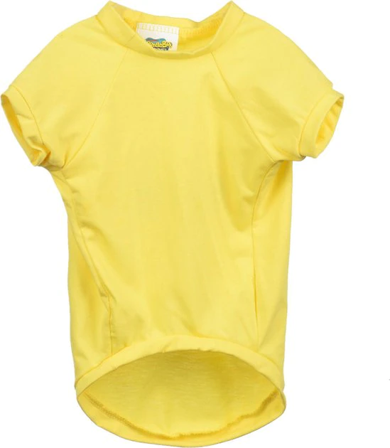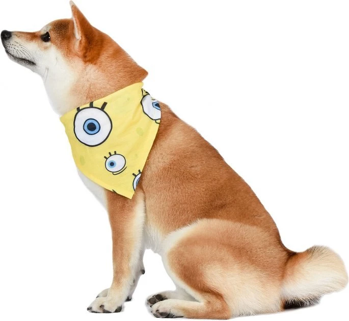 Remember to measure your pet for the paw-fect fit. Your dog will feel like his favorite deep sea hero when you dress him in the Fetch For Pets SpongeBob SquarePants Dog T-Shirt & Bandana Combo. Featuring the signature SpongeBob yellow and his big eyes and toothy grin, this apparel and accessory pair is just what you need to dress up your pup for any occasion. Use this adorable outfit as a Halloween costume, playdate ensemble or for everyday walks and outings—your furry friend will get all the looks and attention when he wears this out and about. Dogs love the soft, lightweight material of this combo, too!