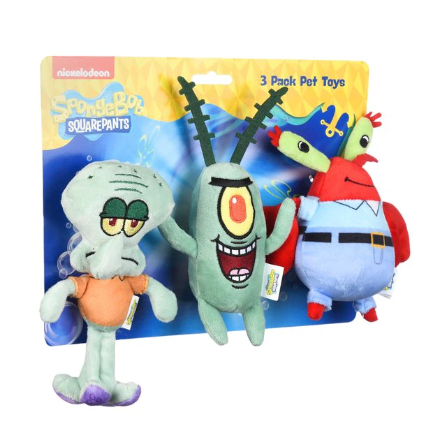 - Features Squidward, Plankton, and Mr. Krabs from SpongeBob SquarePants in the form of plush toys.