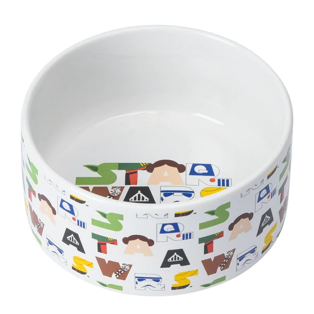 Let your furry friend feast from a bowl that is paw-fect for the biggest Star Wars enthusiasts in the galaxy! Fetch For Pets Star Wars Characters Dog Bowl is an officially licensed Star Wars bowl that is perfect for serving water, treats, wet food, or dry food. Featuring Star Wars themed character designs, this bowl is made of a durable, glazed ceramic that can withstand daily use. It can also be safely cleaned in the top rack of the dishwasher for convenient and sanitary care. This chic, intergalactic bowl is ideal for giving your furry friend her favorite treats or kibble—while letting her show off her love for her favorite Star Wars characters!