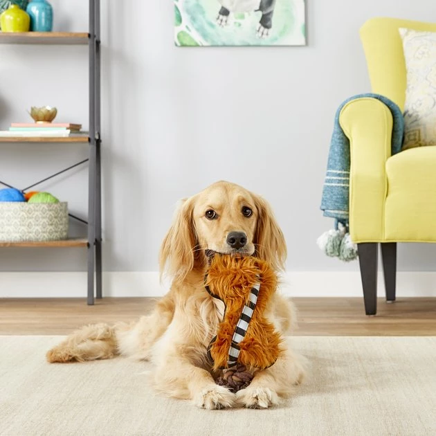 May the Force be with your furry one with this Star Wars Chewbacca Bone Plush Rope Dog Toy from Fetch For Cool Pets. This plush toy is the perfect cuddle buddy for your young fuzz ball and even better for a game of toss and fetch or tug-o-war. Made of polyester, it also has a squeaker on the inside to keep your canine companion interested and occupied. Whether it’s traveling to the park or playing in the Millennium Falcon, Chewie will be there to watch over your pup.