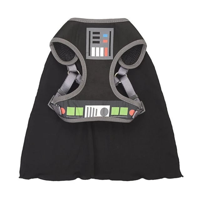 The Force will certainly be with your furry friend while wearing this Fetch For Pets Star Wars Darth Vader Basic Dog Harness! Crafted from comfortable, yet durable fabric, this harness features a Chewbacca design that’s out of this world, so your pup can show off his love for his favorite film series—Star Wars. Harnesses are the paw-fect way to help keep your pup looking great while keeping pressure off of his beck and throat during daily strolls or during adventures. This harness is available in multiple sizes, is grr-eat for all dogs and can be used for everyday wear or during special occasions like Howl-oween!
