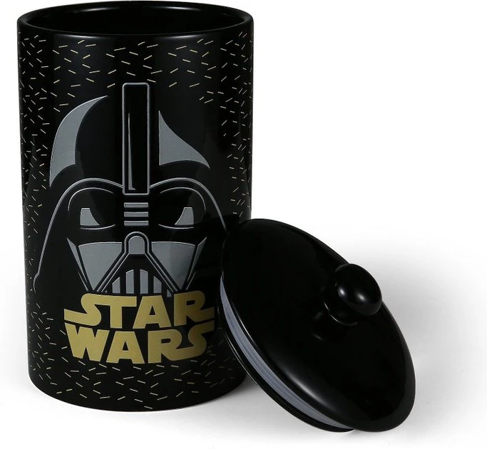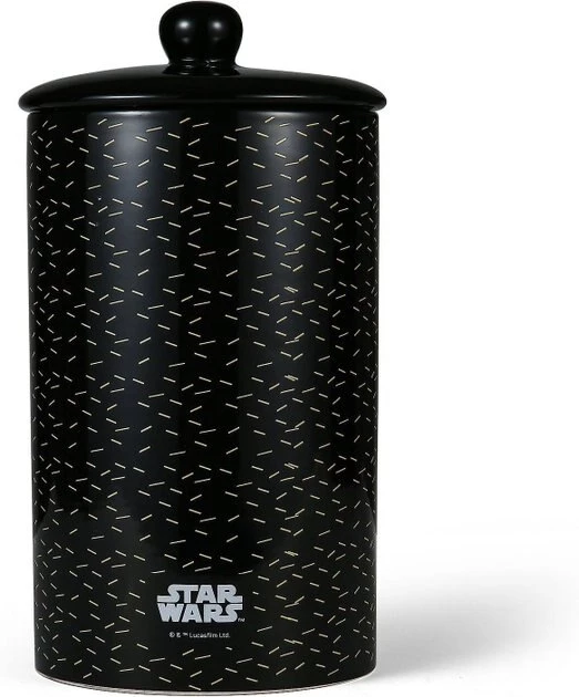 Treat jars don’t have to be an eyesore. Festoon your countertop with the Fetch For Pets Star Wars Darth Vader Dog Treat Jar. This high-quality ceramic jar is a durable solution for pet food and treat storage, complete with a silicone lid seal to help lock in freshness. The jar features an Darth Vader design and is easy to clean on the top rack of your dishwasher.