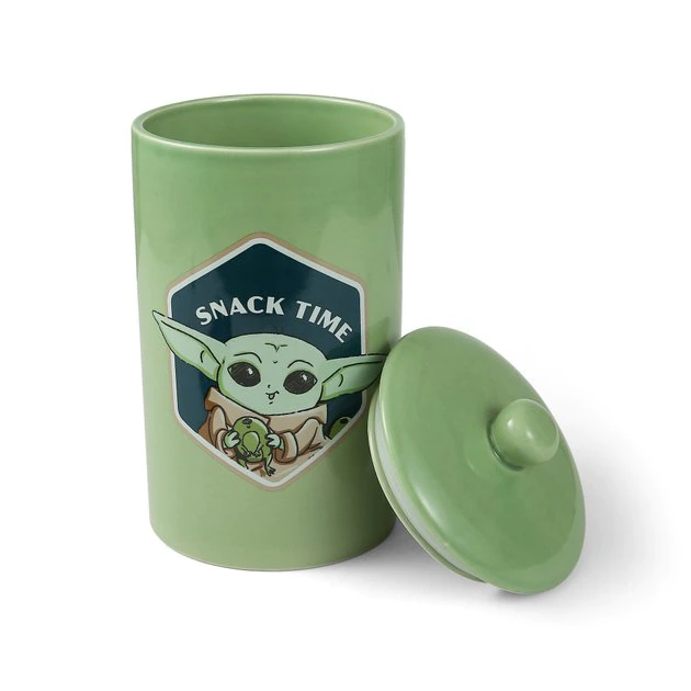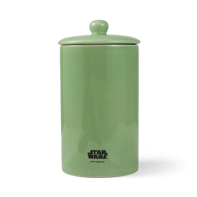 Treat jars don’t have to be an eyesore. Festoon your countertop with the Fetch For Pets Star Wars Mandalorian Snack Time Dog Treat Jar. This high-quality ceramic jar is a durable solution for pet food and treat storage, complete with a silicone lid seal to help lock in freshness. The jar features a Star Wars Mandalorian and Baby Yoda design and is easy to clean on the top rack of your dishwasher.