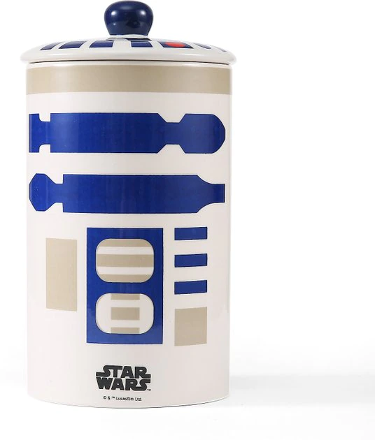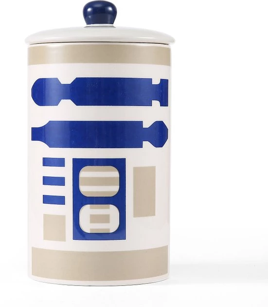 Treat jars don’t have to be an eyesore. Festoon your countertop with the Fetch For Pets Star Wars R2D2 Dog Treat Jar. This high-quality ceramic jar is a durable solution for pet food and treat storage, complete with a silicone lid seal to help lock in freshness. The jar features an R2D2 design and is easy to clean on the top rack of your dishwasher.