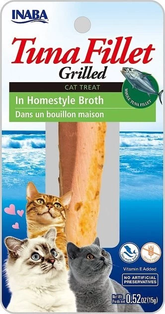 Turn meal time into yum time with the Inaba Ciao Grain-Free Grilled Tuna Fillet in Homestyle Broth Cat Treat. “Ciao delicious!” your hangry kitty will say when you serve up this hand-cut, lightly-grilled fillet of tuna, packed with flavorful protein fit for your little carnivore. The ingredients list is simple—with real meat, broth and added vitamin E for a boost of nutrition in every meaty, flaky bite, with zero junk ingredients like grains or anything artificial. It’s great as an anytime treat or snack, or as a food topper to make meals simply irresistible. Plus, since it’s made with real broth, it adds plenty of moisture to help keep your kitty hydrated and support his well-being, tail to whiskers.