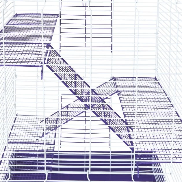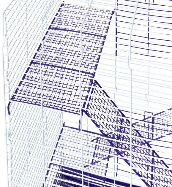 Ware Chew Proof Small Animal Crate is made with a durable, all-metal design. The powder-coated wire cage easily attaches to, and detaches from, the metal drop pan, making cleanup simple and fast. It features a series of shelves and ramps that clip securely to the wire cage. And two large doors provide easy access to your pet. This two-piece design is easy to assemble so you can quickly set up your small pet’s habitat and make her feel right at home in no time.