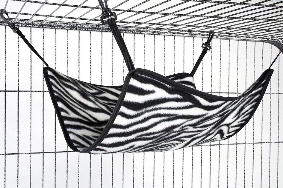 Give your little companion a cozy place to rest with Ware’s Sleeper Hammock. This soft hammock offers your pet a comforting and quiet place to sleep and relax—which, as den animals, small pets like ferrets, rabbits and guinea pigs love! It comes with nylon straps and clips, so you can easily attach it inside your companion’s cage, plus it’s designed with a soft fleece material that’s oh-so-cozy. The hammock comes in different animal-print patterns that ship at random for an added element of surprise and it’s made without foam, which means it’s washable for easy cleaning.