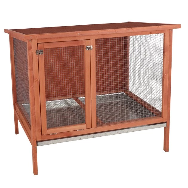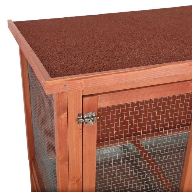 Treat your rabbit to a big home of his own with the Ware HD Rabbit Hutch. This spacious hutch offers plenty of living space. The weather-resistant design features waterproof shingles, rust resistant wire and sealed wood to help keep your rabbit comfy and dry. Plus, the steel slide-out pan makes cleanups a breeze. The roof can be lifted for easy access to your fuzzy friend. Or, fold the side door into a ramp so your rabbit can roam as he pleases.