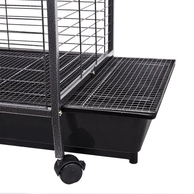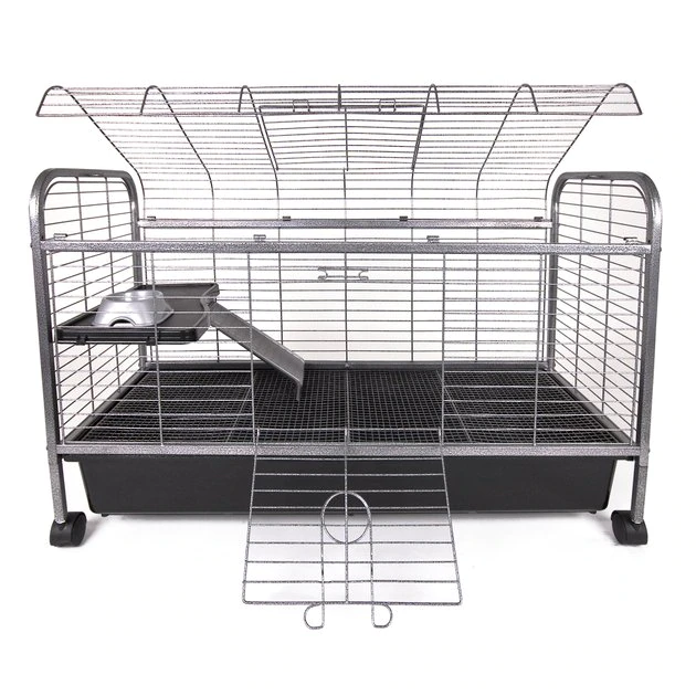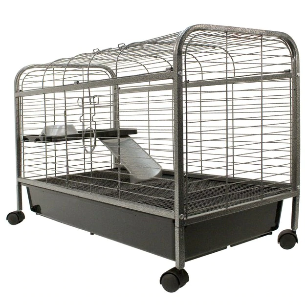 Enjoy comfort, safety, and convenient cleaning with the Ware Living Room Series Rabbit Cage. This cozy cage comes complete with a shelf, ramp and bowl to help your rabbit feel right at home. Caster wheels make it easy to keep your best friend close. Each cage is made with durable plastic and chew-proof welded steel. Narrow 1-inch bar spacing helps keep your curious critter from sneaking out. Plus, the full size slide-out pan makes cleanups a breeze!