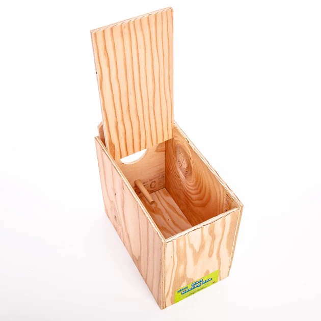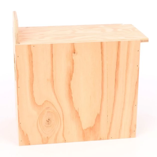 Give your love birds the perfect love nest with the Ware Love Birds Reverse Nest Box. This nest box features a natural wood finish and quality construction. Your pals can preen themselves on the perch area in the front and then head in to rest through the bird-sized entry. It also features a top door that opens toward the front for easy access and cleaning. Welcome to your dream home, beaky buds!
