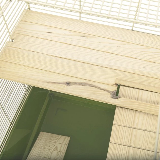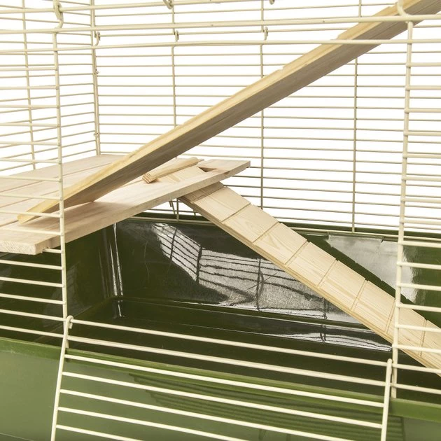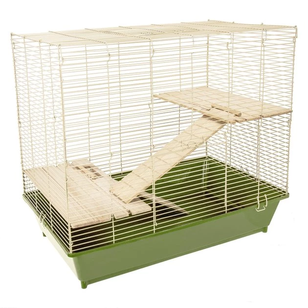 Welcome your chinchilla home with the Ware Naturals 28-in Chinchilla Cage. This starter kit includes natural wooden removeable shelves and ramps, plus a bottle and dish so your chinchilla has plenty of space to eat, sleep and play. The extra-deep plastic base is easy to clean and helps keep messes away from tables and floors. Plus, powder-coated wire and half-inch bar spacing help prevent unwanted escapes. Enjoy snap-in assembly with no tools required.
