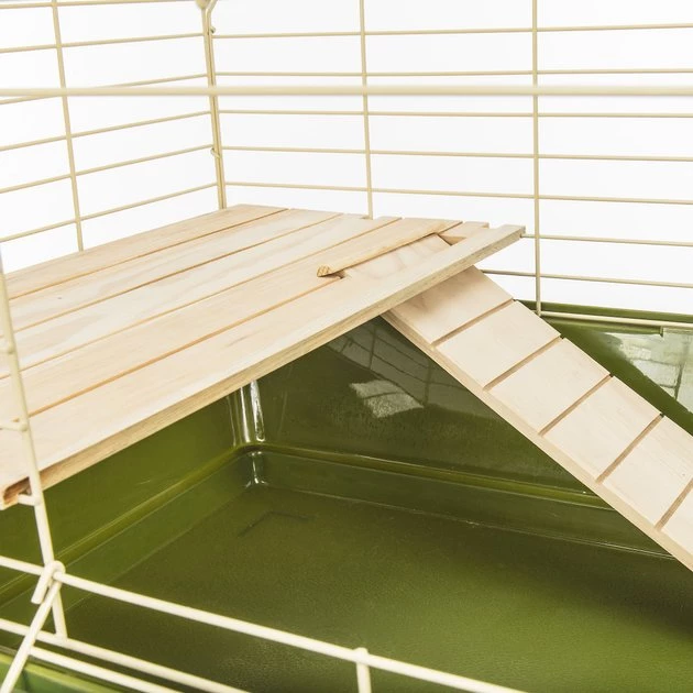 Welcome your little piggy home with the Ware Naturals 28-in Guinea Pig Cage. This starter kit includes a natural wooden hay rack, shelf and ramp, so your guinea pig has plenty of space to eat, sleep and play. The extra-deep plastic base is easy to clean and helps keep messes away from tables and floors. Plus, powder-coated wire and one-inch bar spacing help prevent unwanted escapes. Enjoy snap-in assembly with no tools required.