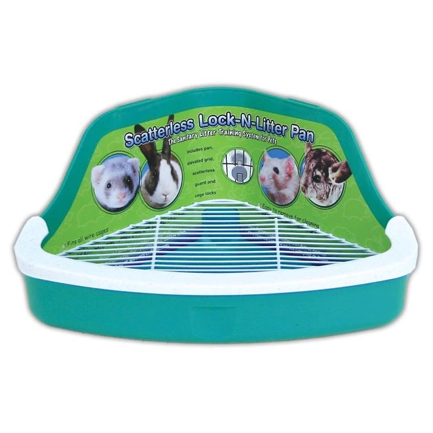 Ware Scatterless Lock-N-Litter Small Animal Litter Pan provides a great solution for helping to keep your small animal’s habitat safe and clean. This attractive litter pan features a low front end for easy entry. A high back and wired floor panel keeps messes in the pan and away from your pet’s feet. It attaches securely to any wire cage with integrated clips. And with a wide, open bowl made of stain- and odor-resistant plastic, it’s easy to clean and disinfect.