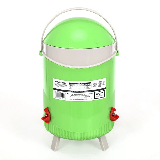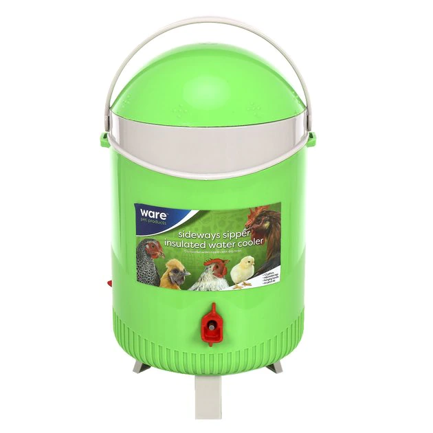 Nothing beats a cold drink on a hot day and Ware’s Sideways Sipper Insulated Water Cooler makes it possible for your darling brood! The UV-stabilized cooler is designed to help keep water cool during the summer and warm during the winter. Its all-weather plastic construction withstands unpredictable elements and rounded top keeps your ladies from perching on top and soiling the water nipples. This thirst-quencher can be stored off the ground with three foldable legs or hung in the coop.
