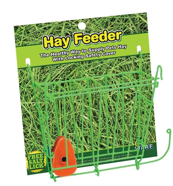 Ware Small Animal Hay Feeder is a great way to feed your small pet while ensuring her cage remains clean and safe. Made using sturdy, powder-coated wire, this durable feeder features a safe locking lid. And with integrated metal clasps, it easily attaches to any wire cage. By holding hay in place as your pet eats, it even cuts down on wasted food. Plus, it includes a free salt licker small animals love.